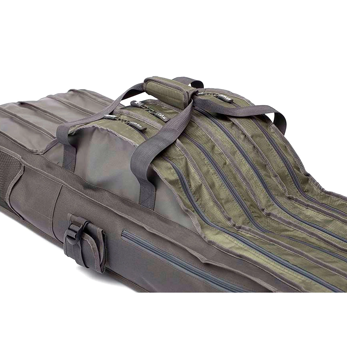 Deze foudraal is voorzien van 3 compartimenten waar je je opgetuigde hengels veilig in kunt vervoeren. Ook aan de buitenkant zitten diverse vakken waarin je bijvoorbeeld de paraplu kwijt kunt. Voor het comfort is het foudraal voorzien van een verstelbare schouderband. Een ideaal accessoire voor iedere sportvisser!