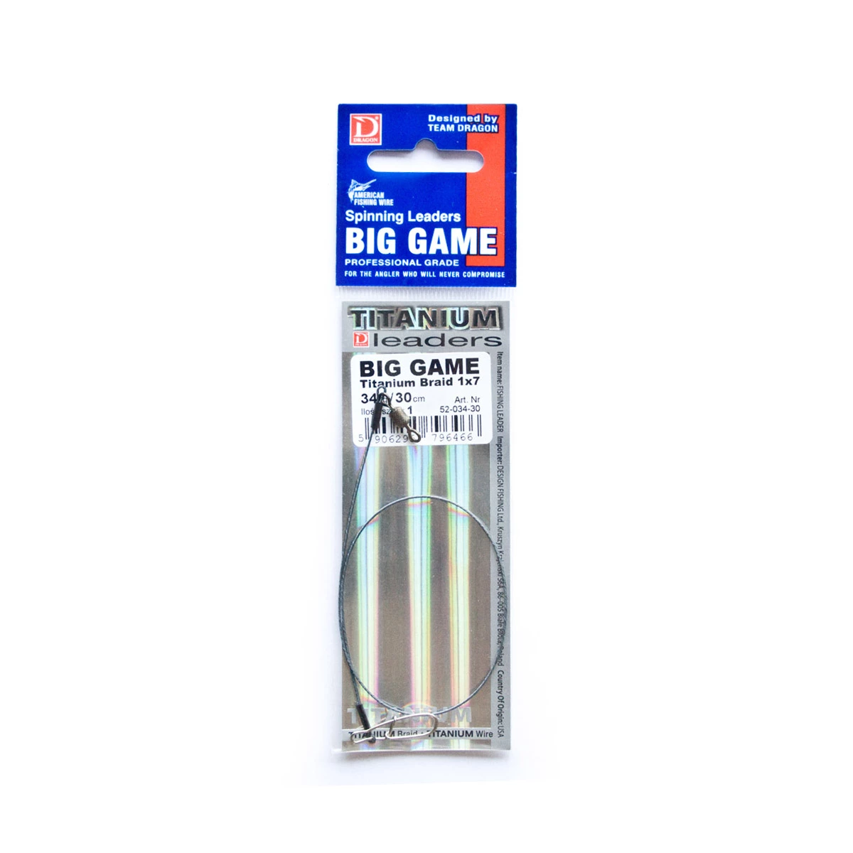 Snoek onderlijnen, gemaakt van top kwaliteit American Fishing wire Titanium BRAID Surfstrand 1×7. De Dragon AFW Titanium leaders zijn licht en dun en vrijwel onzichtbaar onder water.Titanium Braid heeft een ongelofelijke lange levens duur omdat dit materiaal ongevoelig is voor snoek of snoekbaars tanden en niet kinkt. Doordat de gevlochten Titanium braid 1×7 licht en soepel is zal het kunstaas niets van zijn actie verliezen.De onderlijnen worden met de hand gemaakt. Zo worden de sleeves met een sleevetang via luchtdruk met de juiste kracht vast geknepen.