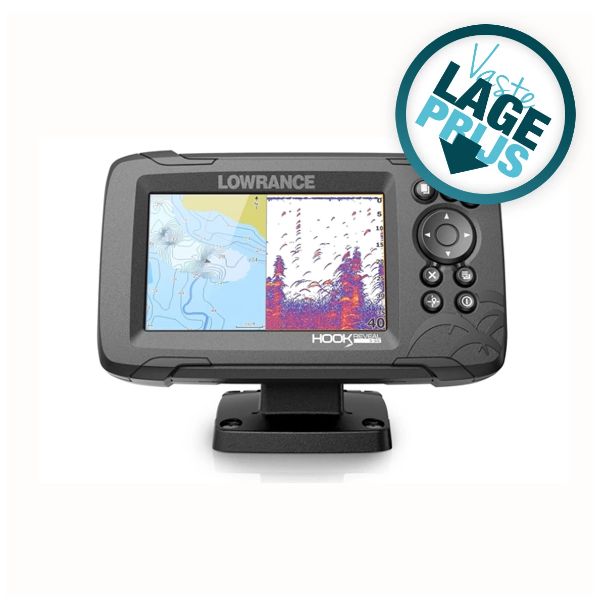 De Hook Reveal 5 Splitshot 83/200 HDI van Lowrance is voorzien van een helder 5 inch display waarmee u vanuit elke kijkhoek een scherp beeld heeft. De dieptemeter is voorzien van Fishreveal, dit is een combinatie van beelden van de CHIRP-sonar met hoogwaardige beelden van onderwaterstructuren van DownScan Imaging. De Hook Reveal 5 Splitshot 83/200 HDI is voorzien van Genesis Live, hiermee kunt u eenvoudig kaarten of contouren maken en aanpassen.
