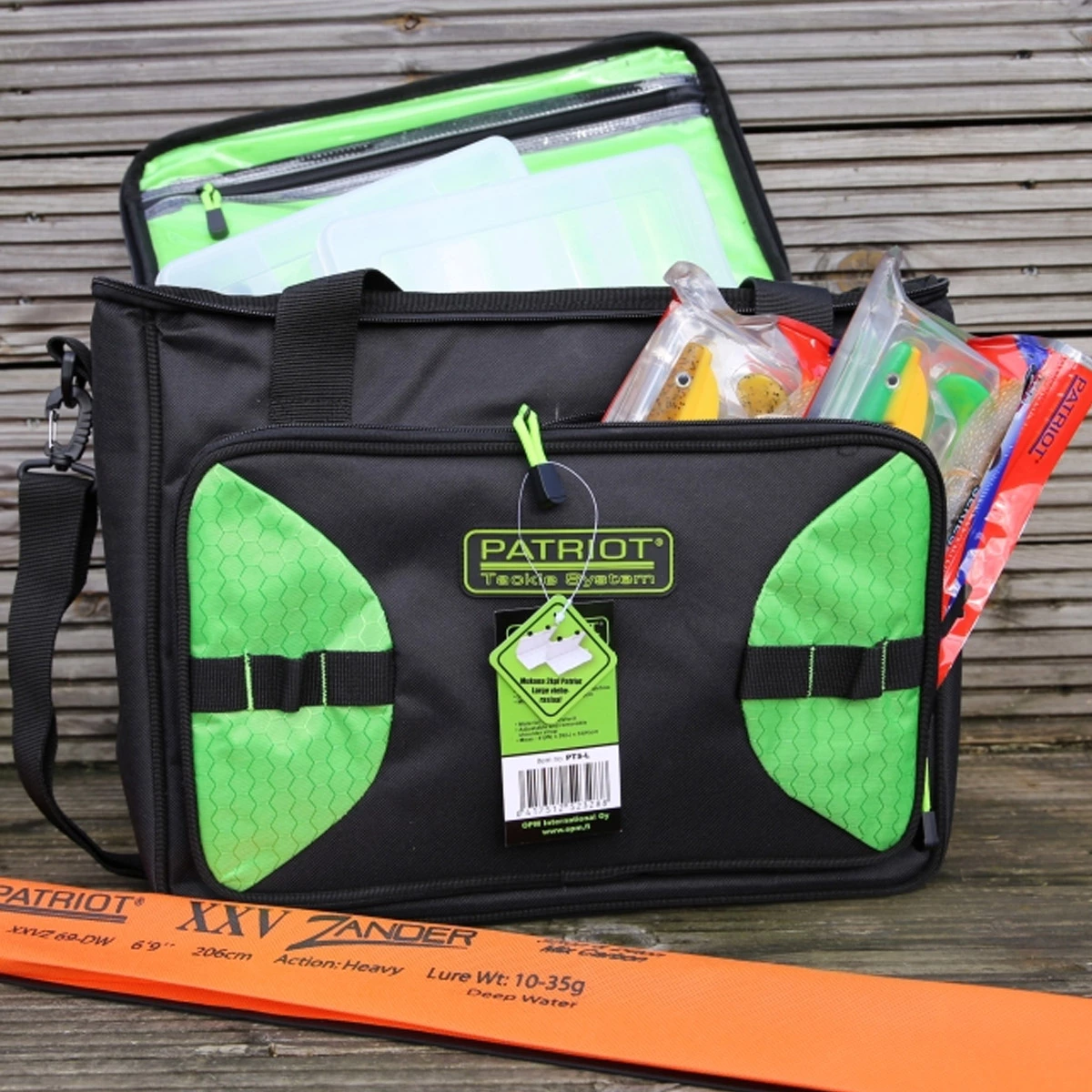Een mooie serie tassen van het merk Patriot. De Patriot vistas medium is voorzien van 3 tackleboxen en heeft de nodige opberg- en insteek vakken.