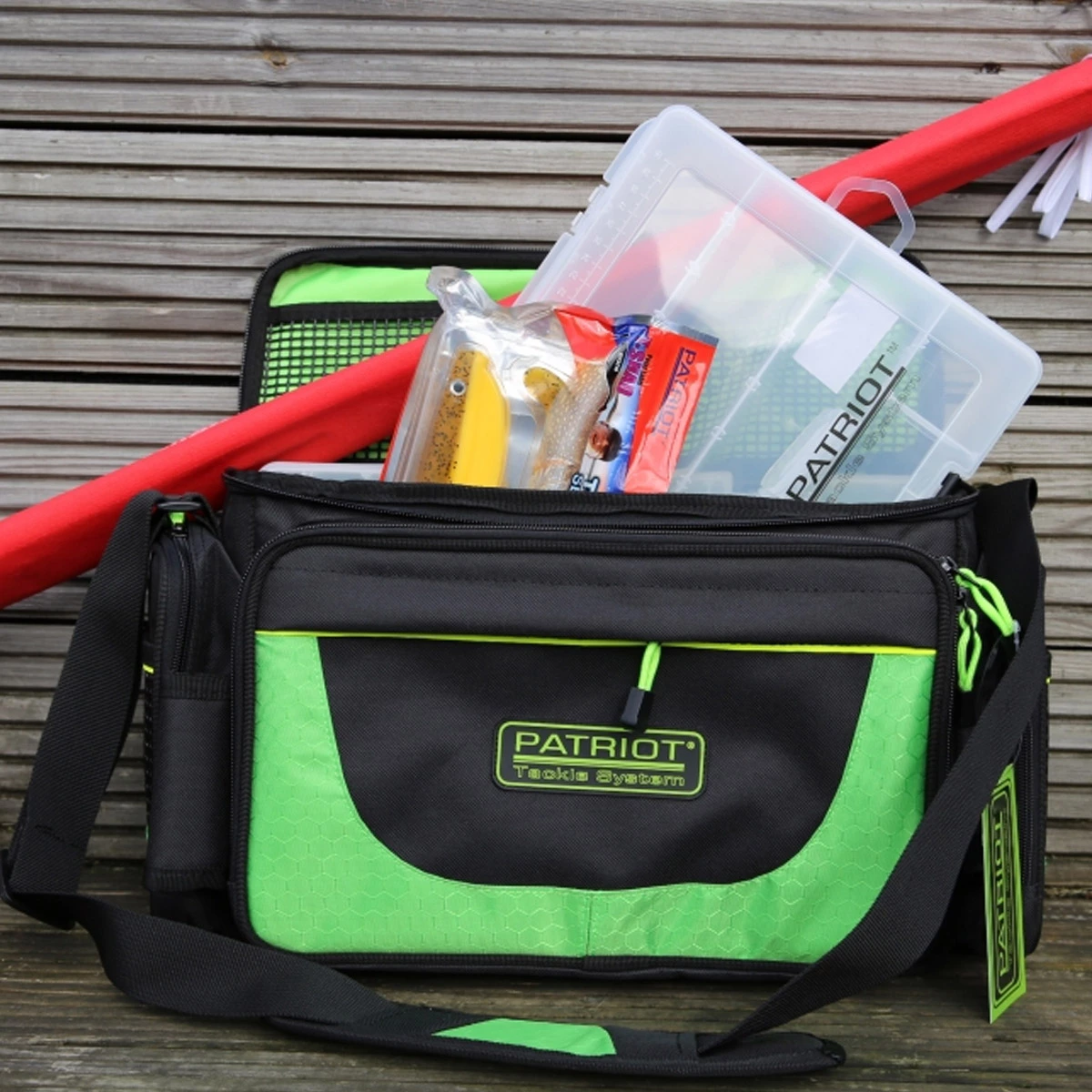Een mooie serie tassen van het merk Patriot. De Patriot vistas klein is voorzien van 2 tackleboxen en heeft de nodige opberg- en insteek vakken.