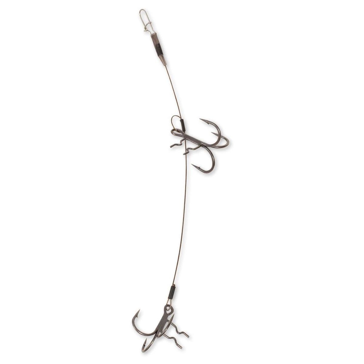 Wanneer de beten voorzichtig zijn zorgen deze stingers voor een extra haakkans. Dankzij de unieke Q-dreg met een klauw aan de steel steken alle drie de punten van de dreg gevaarlijk naar de zijkanten uit. Afgestemd op de belangrijkste shadlengtes en met 28 kilo AFW RVS en AFW sleeves perfect verwerkt. Heel slim, er zit een stevige rubberen slang boven de lus als veiligheidsvoorziening, waarmee de stinger kan worden bevestigd via de jighaak of het oog van de wartel.