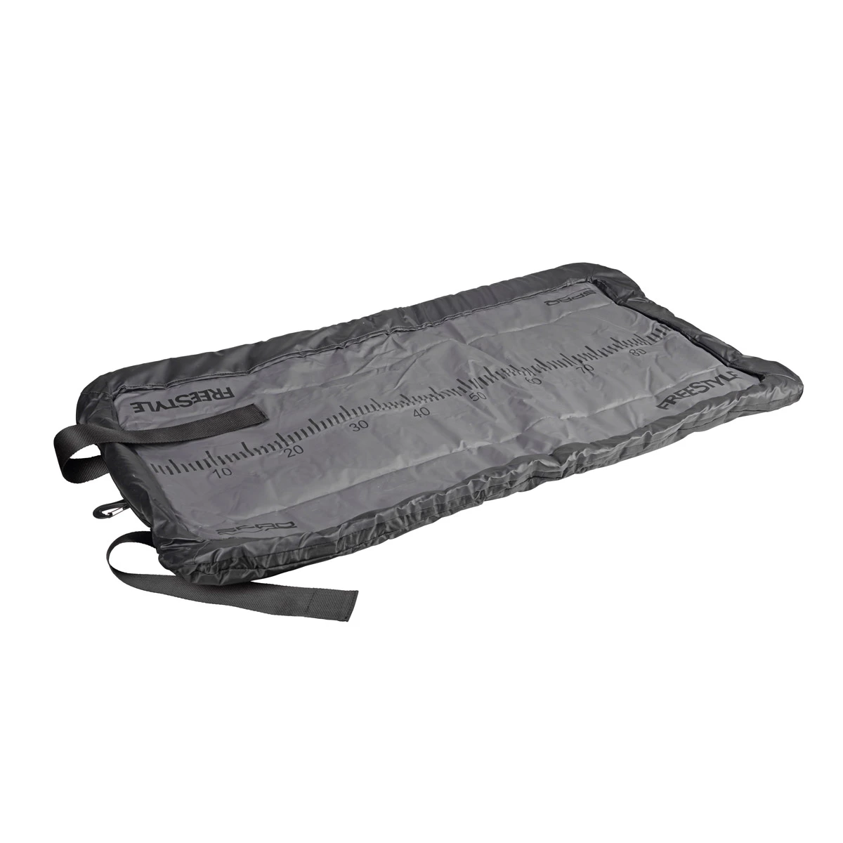Deze mat is compact en licht van gewicht. De Lite mat + is met zijn lengte net iets groter dan het origineel. makkelijk mee te nemen en voorzien van meetlint. Het materiaal is waterafstotend en is in het midden voorzien van een lichtere kleur zodat het deel waar de vis ligt ook in de warmere maanden het koelst blijft.