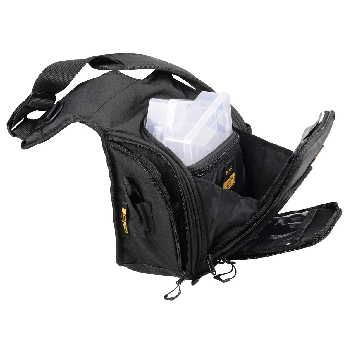 Een SPRO-klassieker. De shoulder bag is comfortabel, praktisch, compact én gebruiksvriendelijk. Dankzij het ontwerp kan de tas gemakkelijk van voren naar achteren gedraaid worden. Inclusief 2 kleinere tackleboxen en een grote foamplaat in het voorste compartiment voor het opbergen van pluggen, jigkoppen en geprepareerde softbaits. Op functionele plaatsen zijn D-ringen en end-tackle-compartimenten gepositioneerd.