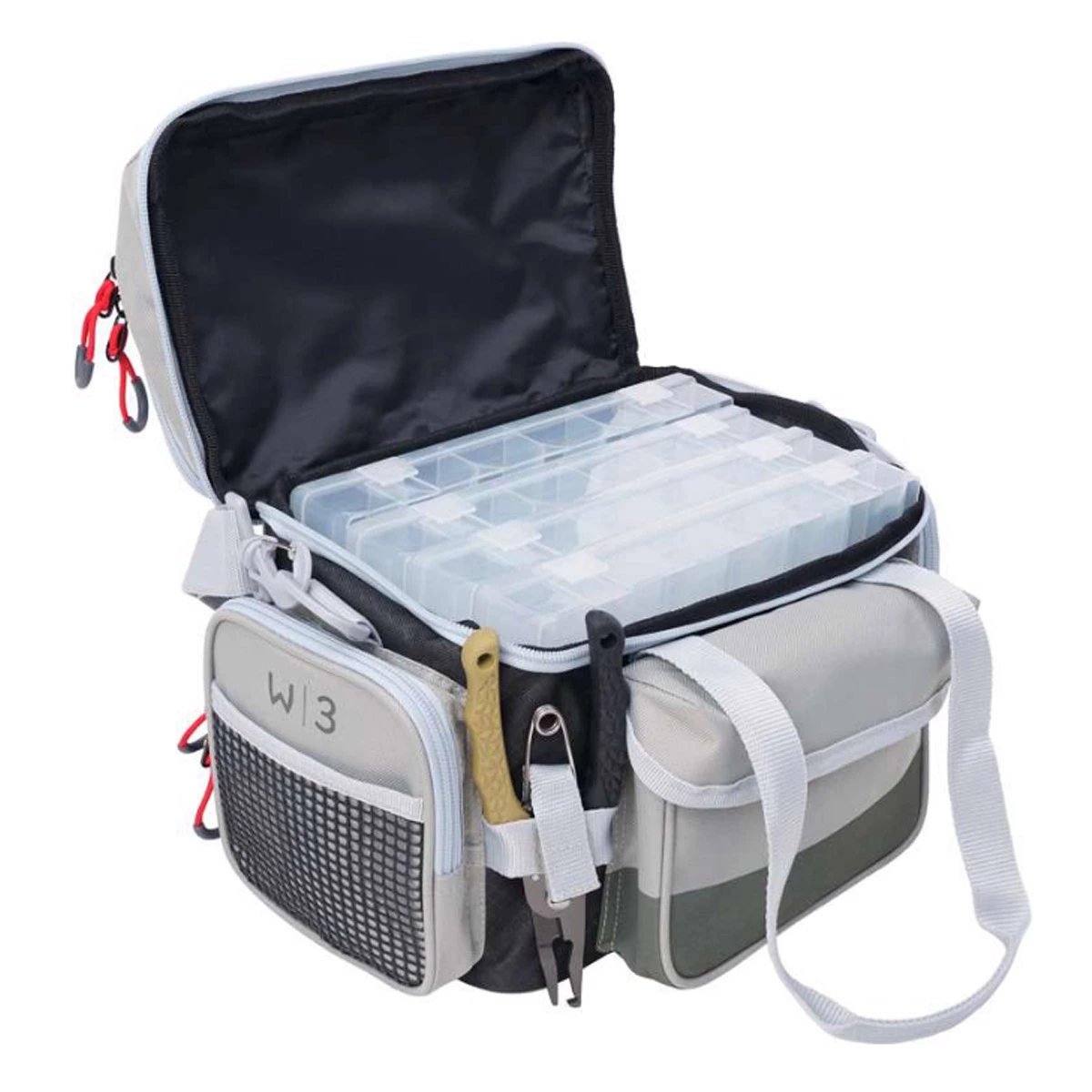 De W3 Lure Bag Plus houdt je kunstaas georganiseerd en je eten vers. Deze tas is voorzien van kunstaasdozen, een koeler voor het hoofdcompartiment, verschillende vakken, klittenbandsluitingen en extra grote ritsen – de perfecte tas voor het vissen op de oever en op de boot.